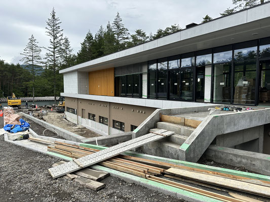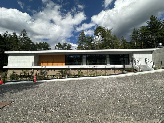 長野県の北部に位置し、長野の美しい山々や野尻湖・黒姫など自然に囲まれた信濃町立病院の新設移転工事の笠木やルーバー金物、階段手摺、エクステリア各種を担当させて頂きました。