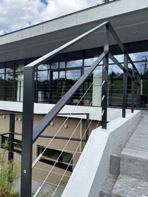 ベランダの手摺り、屋根の笠木、タラップを弊社で担当しました。
